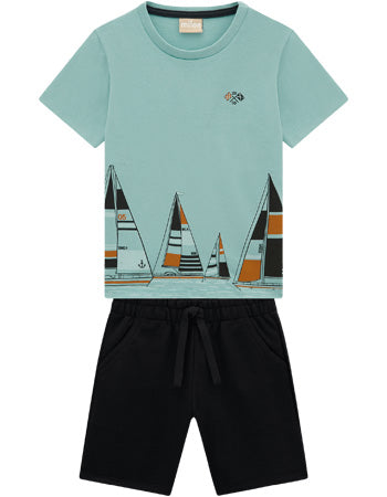Set sail in style with this charming nautical-inspired outfit for boys. The mint green T-shirt features a delightful yacht print design across the front, bringing a splash of seaside adventure to everyday wear. Paired with contrasting shorts for a bold, coordinated look, this set is perfect for sunny days and seaside strolls.