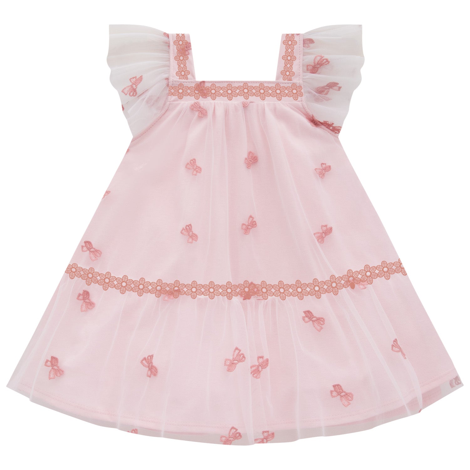 Graceful and full of charm, this sophisticated pink dress features a square neckline, multi-layered tulle skirt, and all-over delicate detailing for a truly special look. The bodysuit is crafted from 100% polyamide, with embroidery and lining in 100% cotton, and a soft, floaty tulle overlay in 100% polyester—perfect for parties, celebrations, or any moment that calls for a little extra magic.