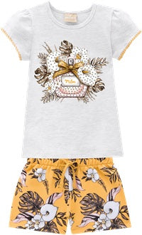 Brighten up her day with this cheerful and comfy two-piece set! The grey marl T-shirt features a stylish yellow trim on the sleeves and a fun front print, perfectly matched with mustard yellow shorts showcasing an all-over print and a coordinating drawstring for a pop of playful charm.