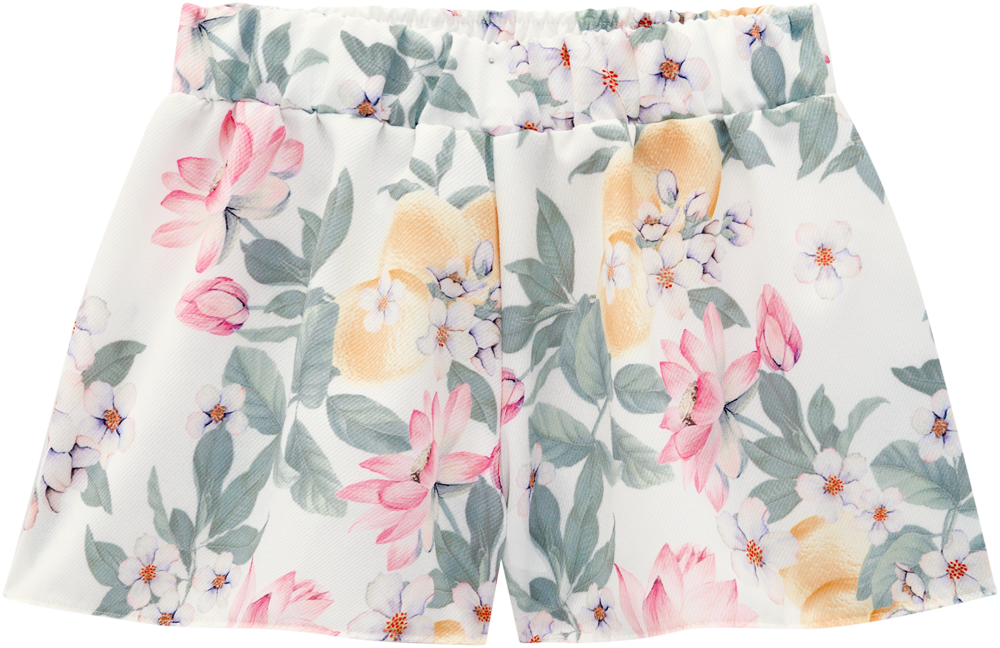 Girls' Cream Floral T-Shirt & Shorts Set – Soft Cotton & Stretch Blend