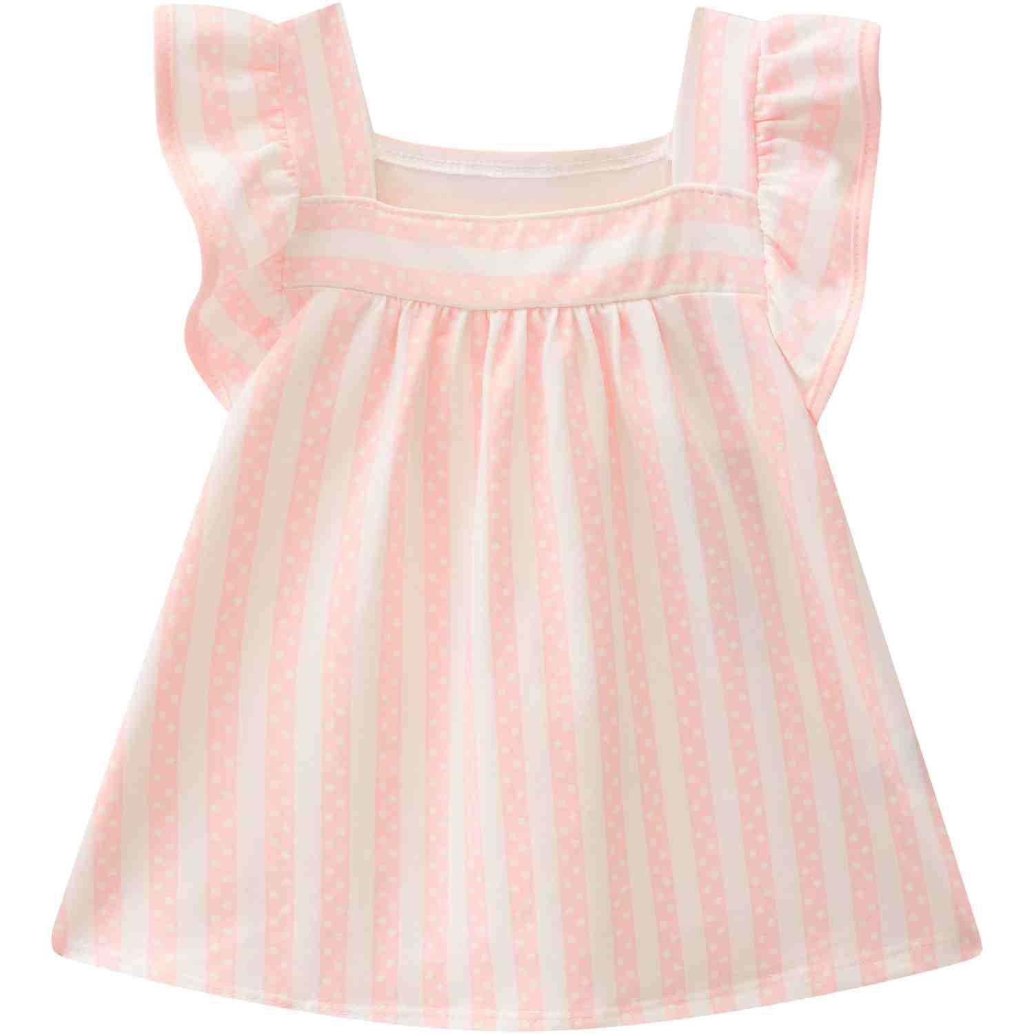 Perfect for sunny days and playful moments, this girls' two-piece set features a pink and white top with a charming square neckline, crafted from a soft and stretchy cotton-elastane blend. The coordinating pink shorts, made from 100% cotton, are finished with contrasting side trims for a fun and sporty touch. A stylish and comfortable outfit for everyday adventures.