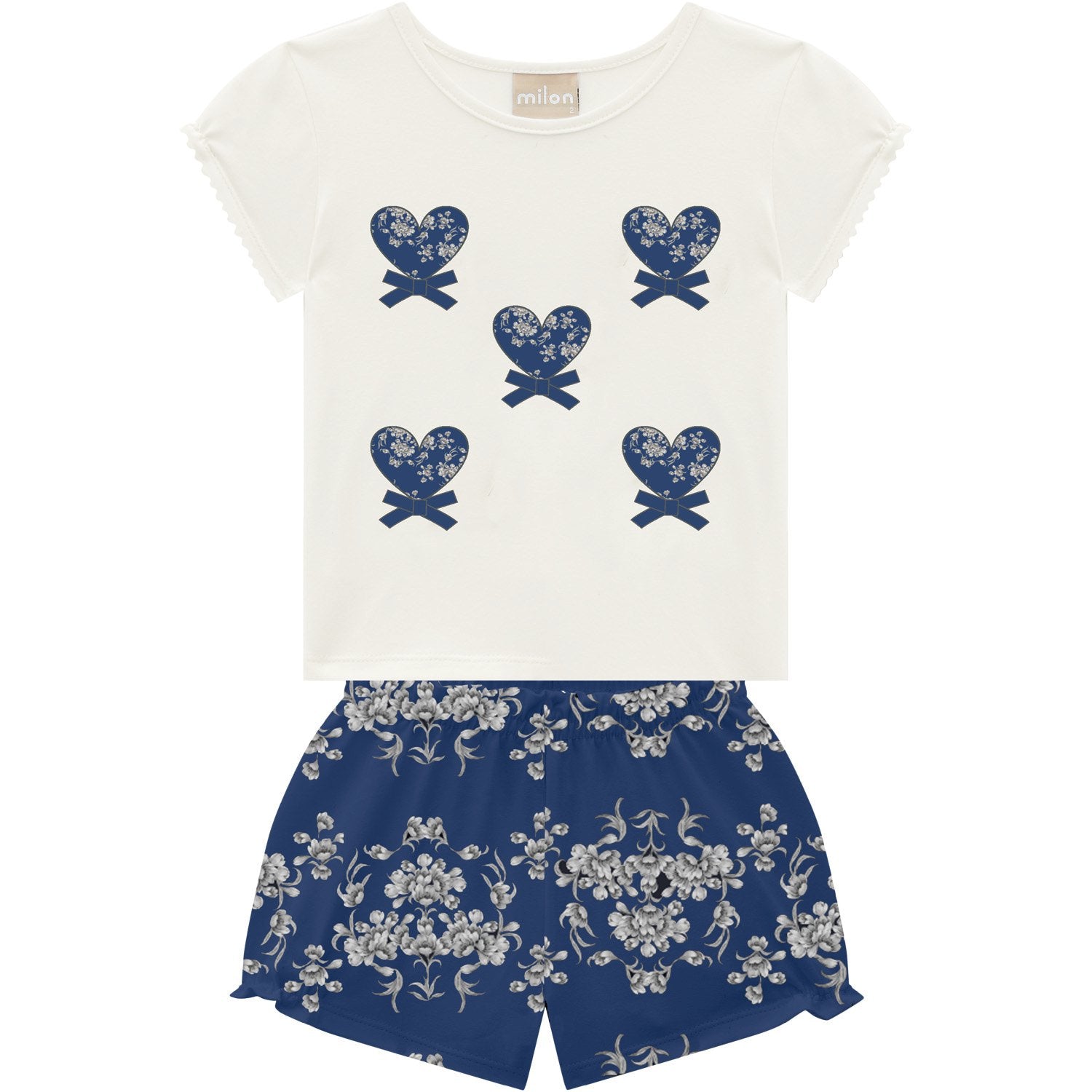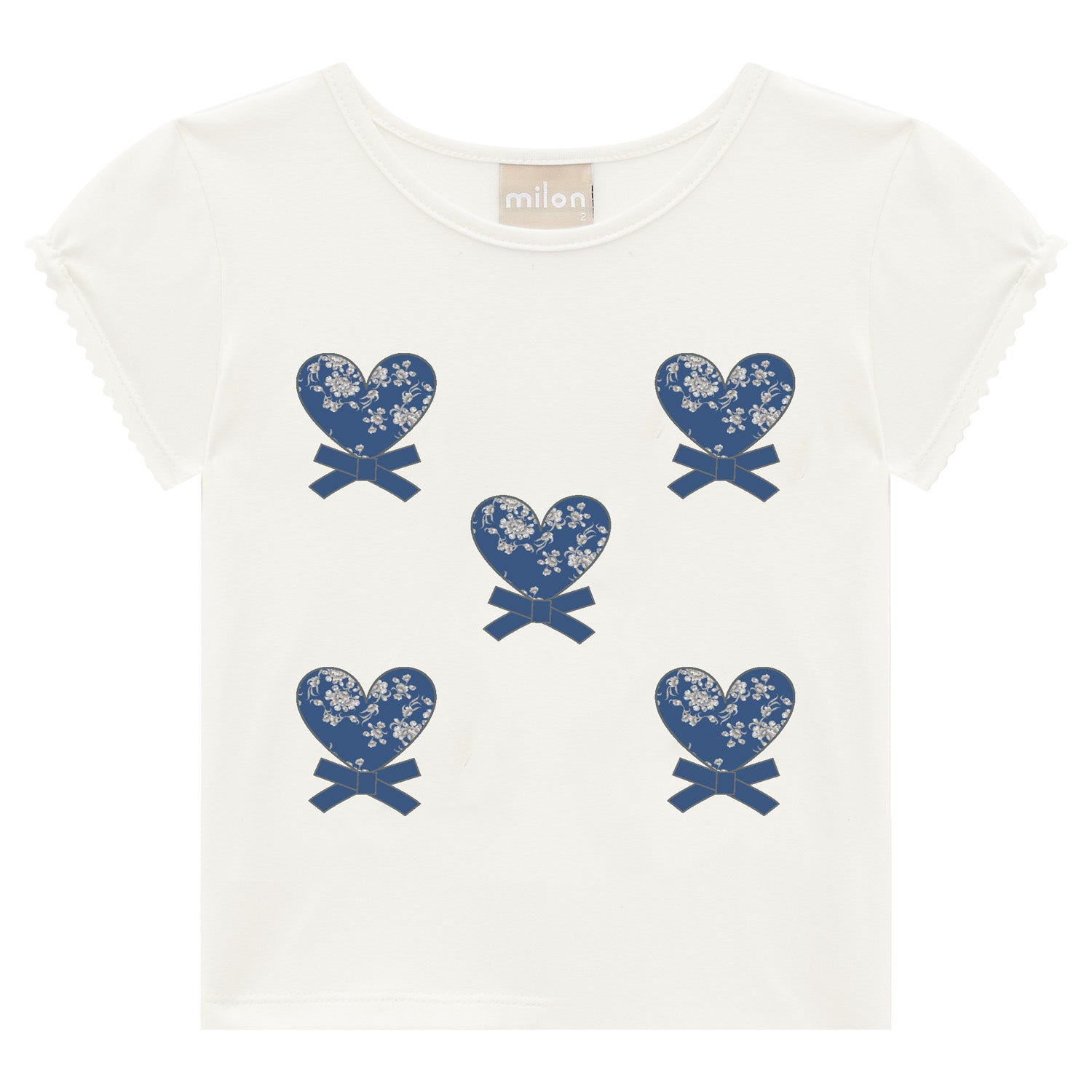 Full of fun and sweet details! This adorable two-piece set features a cream T-shirt decorated with multiple hearts and bows on the front, paired with blue shorts covered in a playful all-over floral print. Made from a soft and stretchy blend of 95% cotton and 5% elastane, it’s perfect for everyday adventures with a touch of charm.