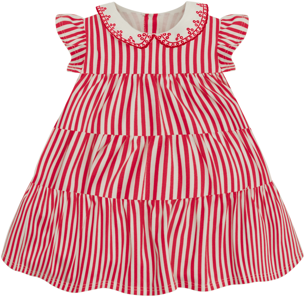Timeless and charming, this red and white striped dress features a beautifully embroidered collar and delicate cap sleeves for a refined finish. Made from a soft and stretchy blend of 95% cotton and 5% elastane, it offers both comfort and style—perfect for special occasions or everyday wear.