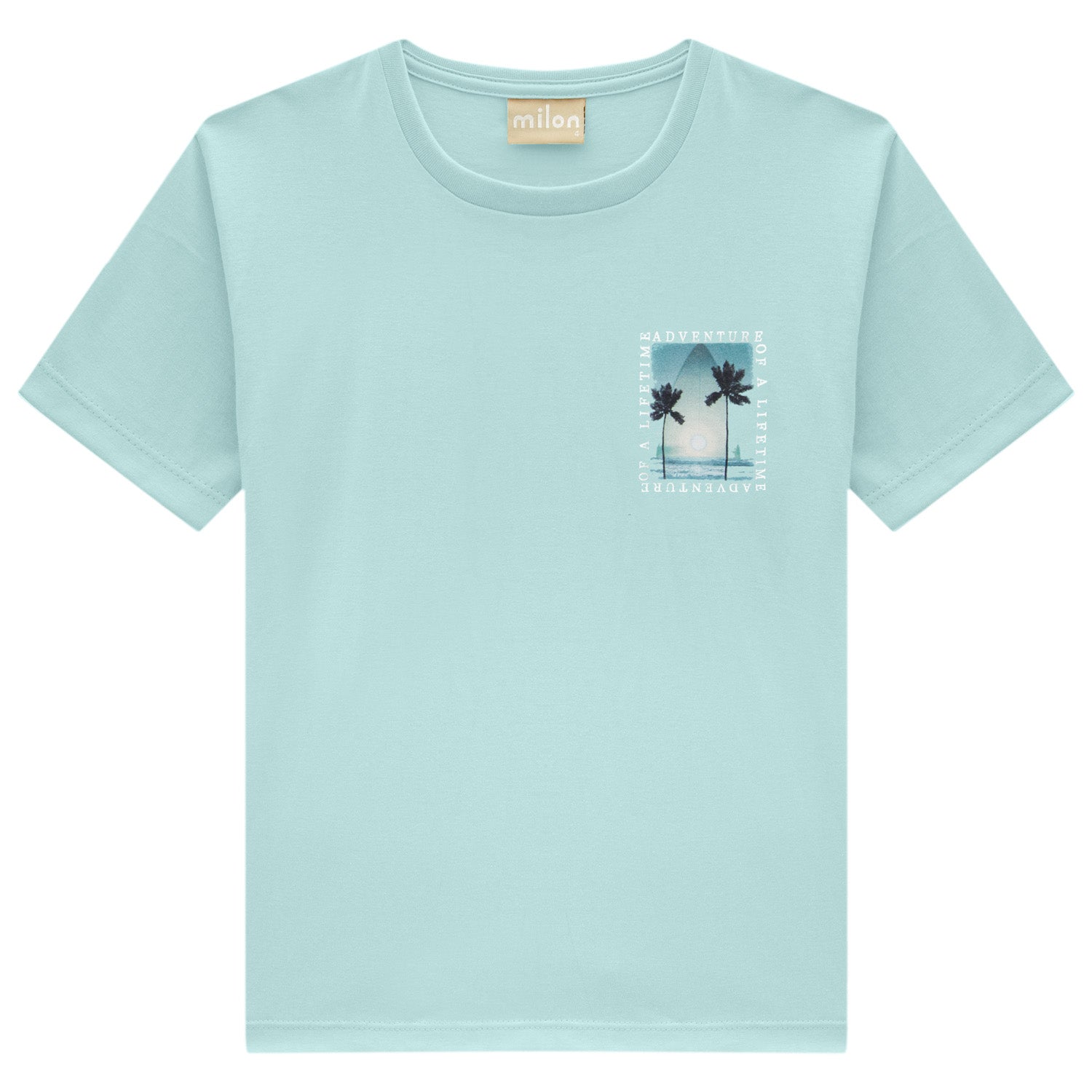 Add a breezy, tropical touch to your child's wardrobe with this charming mint green T-shirt. Made from 100% soft, breathable cotton, it features a small palm tree appliqué on the chest for a subtle accent, while the back showcases a larger matching print for a fun, laid-back vibe. Perfect for sunny days, beach outings, or casual play, this tee combines comfort with effortless style.