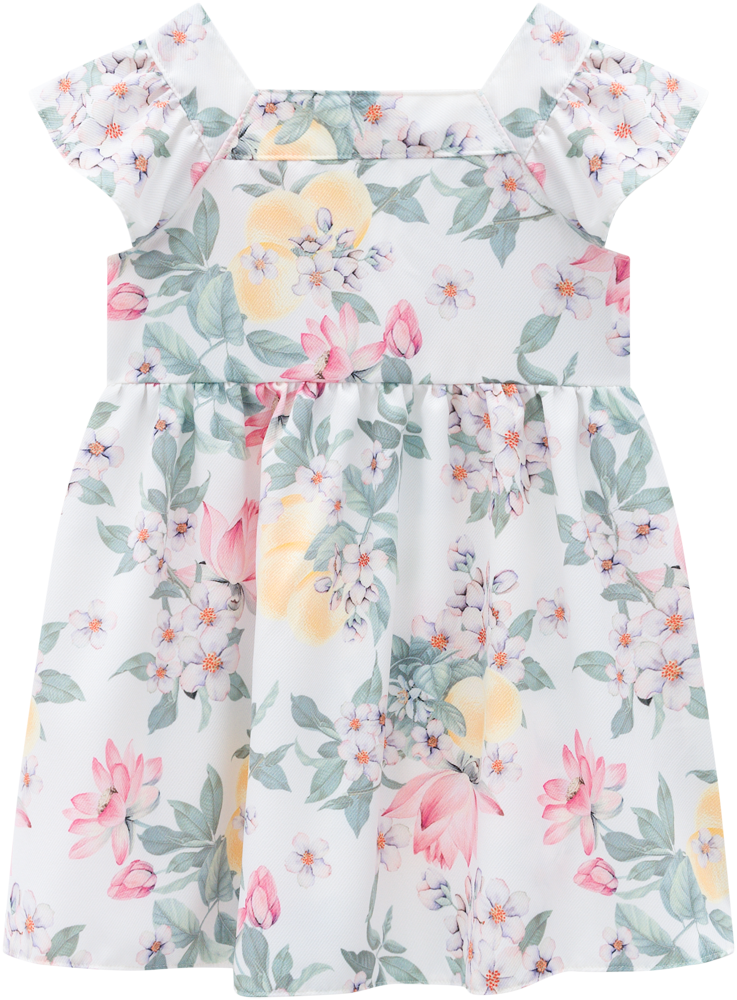 Discover her new favorite warm-weather essential! This stunning white dress showcases a beautiful, all-over multicolour flower print, bringing a playful yet sophisticated touch to her wardrobe. The thoughtful sleeve detail adds a refined finish, making it perfect for any occasion.