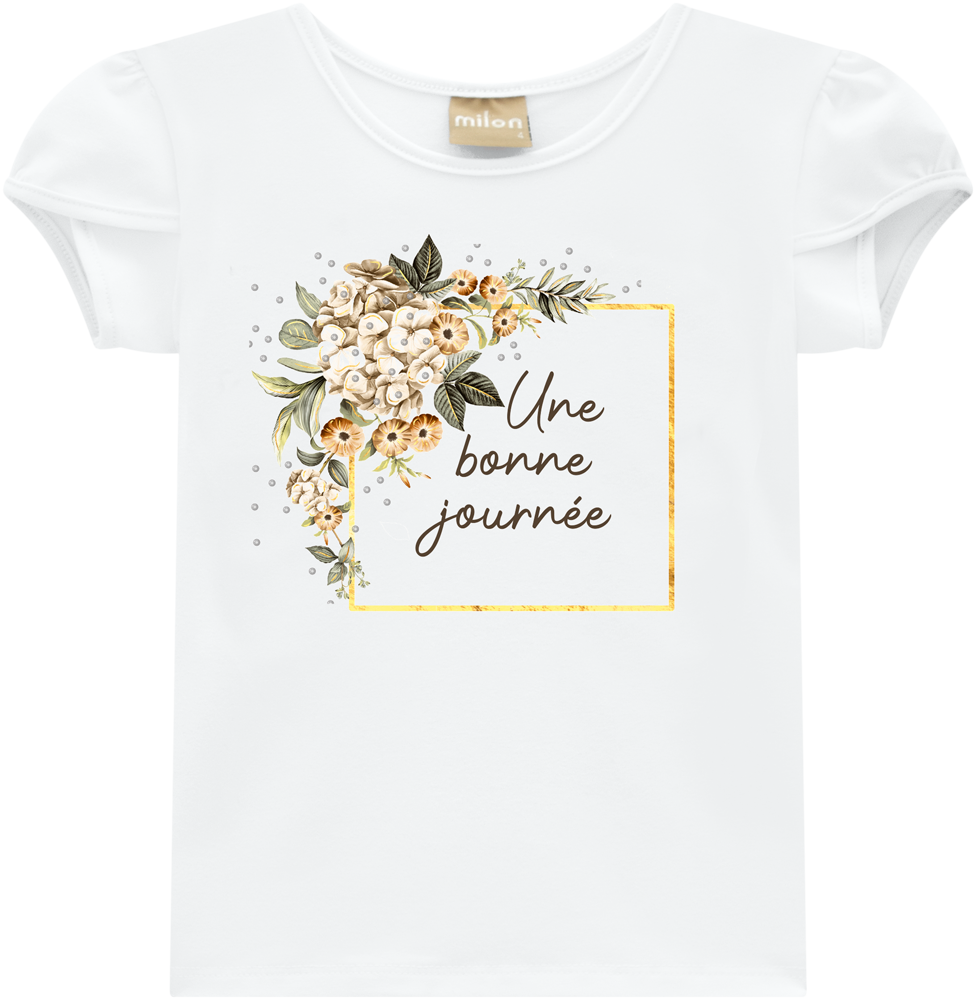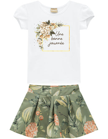 Add a playful touch to her wardrobe with this charming two-piece set, perfect for sunny days and special outings. The half-sleeve T-shirt comes in crisp white with a fun front print, made from a soft and stretchy blend of 95% cotton and 5% elastane for all-day comfort.
