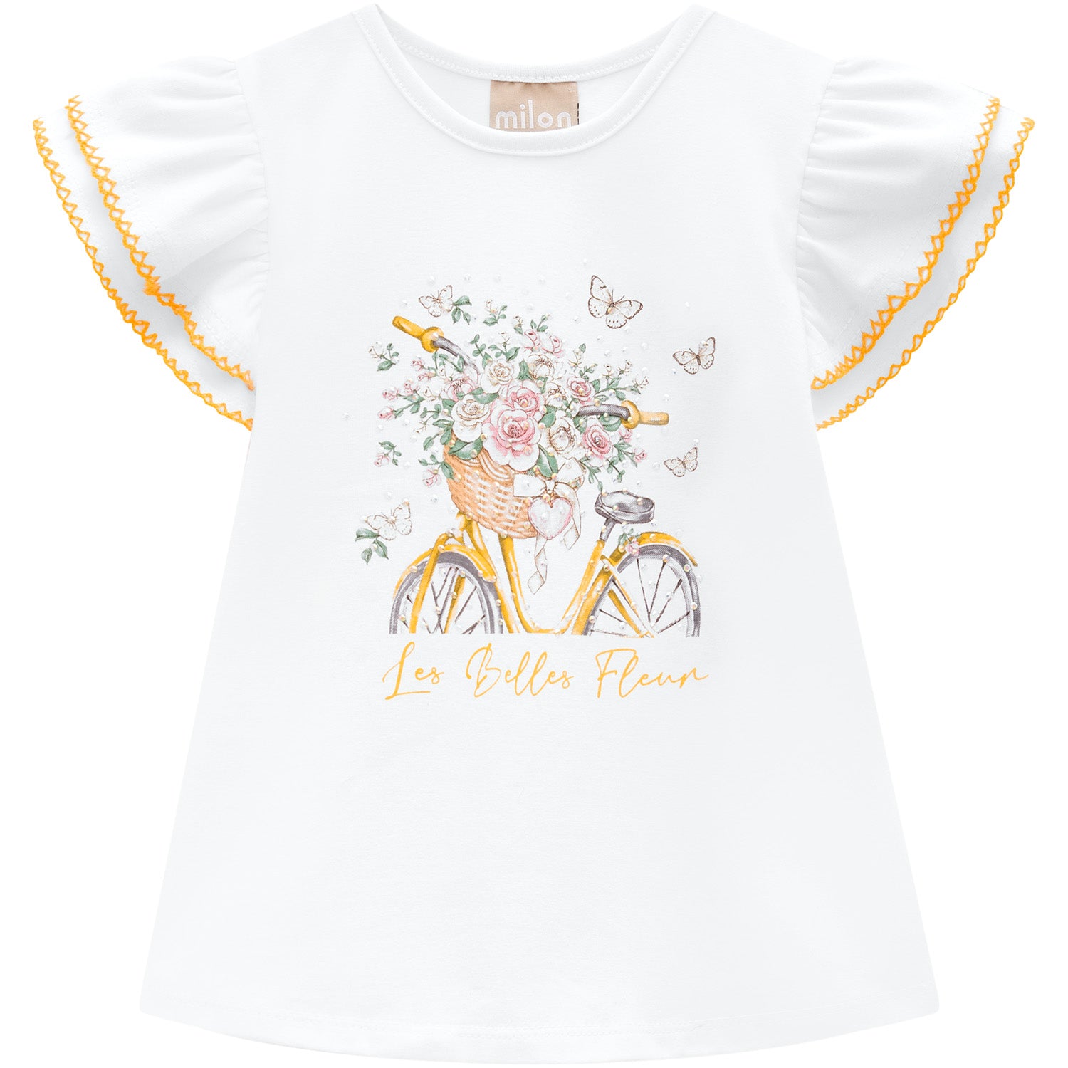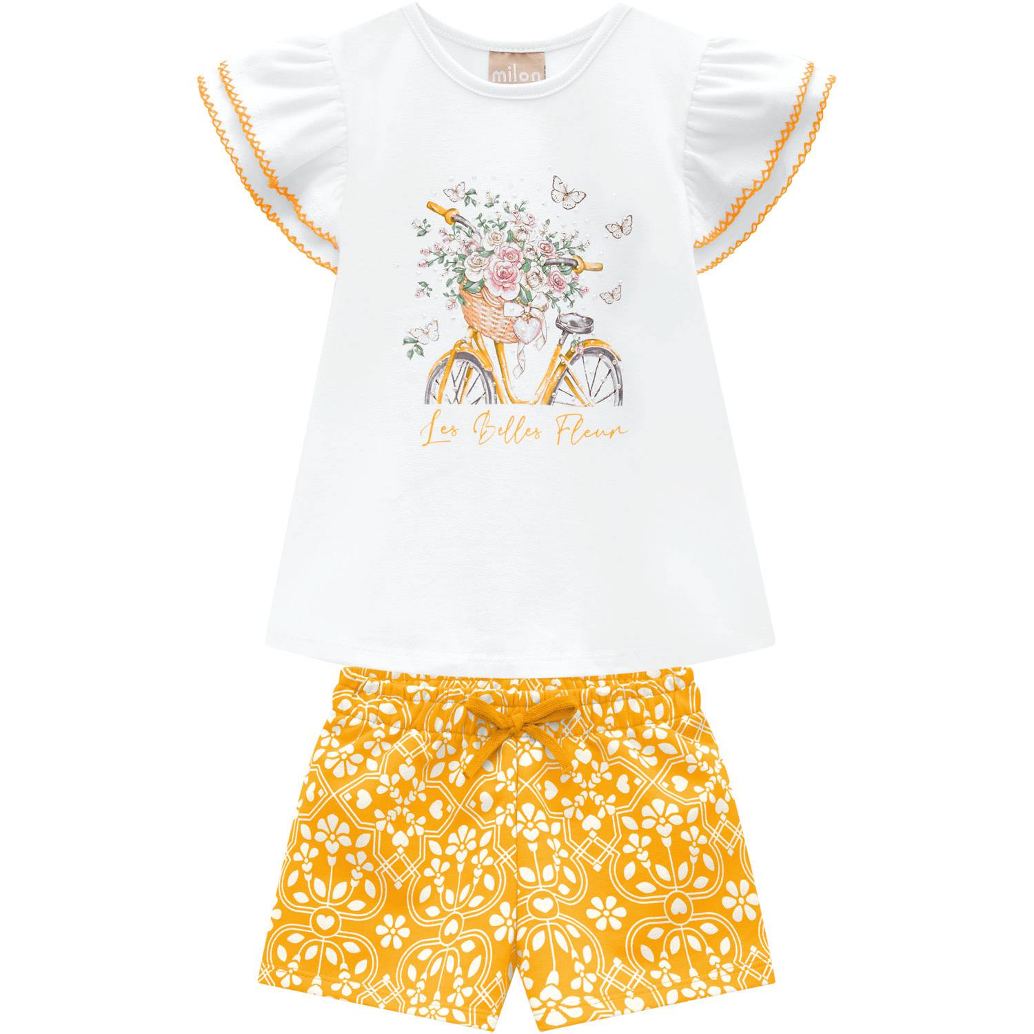 This fun and comfy set includes a white short-sleeve top featuring a playful bicycle graphic and neatly double-stitched sleeve edges, made from a soft 95% cotton, 5% elastane blend. It’s paired with lightweight 100% cotton yellow shorts, complete with a drawstring waist and a lively all-over print—perfect for everyday adventures and warm-weather play.